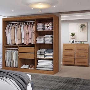 - Acompanha: 1 Guarda-Roupa + 1 Cômoda + Kit Ferragens + Manual de Montagem