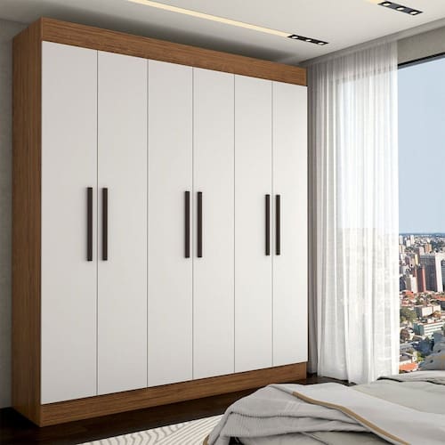 O(a) Guarda-Roupa Casal Europa 6 Portas 2 Gavetas 100% Mdf Cinamomo/Off White - Loja é produzido em 100% MDF na escala de brilho Semi-Brilho, e possui um grau de dificuldade de montagem: Médio.