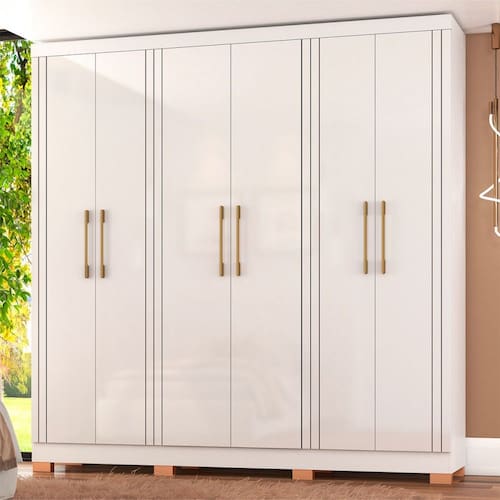 Guarda-Roupa Casal Fiorini 6 Portas 4 Gavetas Branco - Pnr Móveis