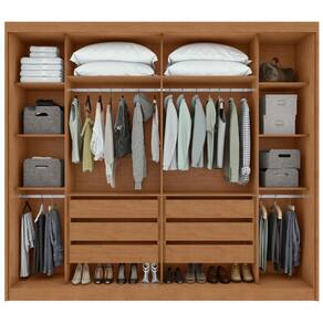 Caracteristicas: Estrutura em MDF com chapas de 15m Perfil puxador em aluminio Interno diferenciado com 14 nichos 6 Gavetas Corredicas telescopicas Gavetas com distanciadores em MDF Molduras laterais em MDF de 25mm Portas deslizantes e dupla-face Encabecamento das portas em aluminio Espaco para sapatos Trilhos em aluminio Roldanas regulaveis com molas
