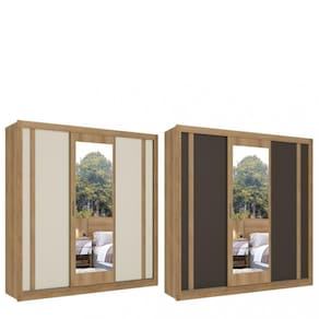 O Guarda Roupa Casal Flex com Espelho 3 Portas de Correr Ibiza THB oferece muito estilo e funcionalidade com puxadores longos em madeira nas portas laterais. Seu interno, com uma maravilhosa colmeia central, proporciona o espaco ideal de armazenamento para suas roupas e pertences. Possui ainda 4 gavetas com trilhos telescopicos, 2 cabideiros e um excelente espaco no maleiro. Adicione muita elegancia ao seu dormitorio com o Roupeiro Ibiza da THB Moveis! Alem de tudo, e um produto flex que proporciona ao cliente a opcao de escolher a combinacao de cores das portas na hora da montagem!