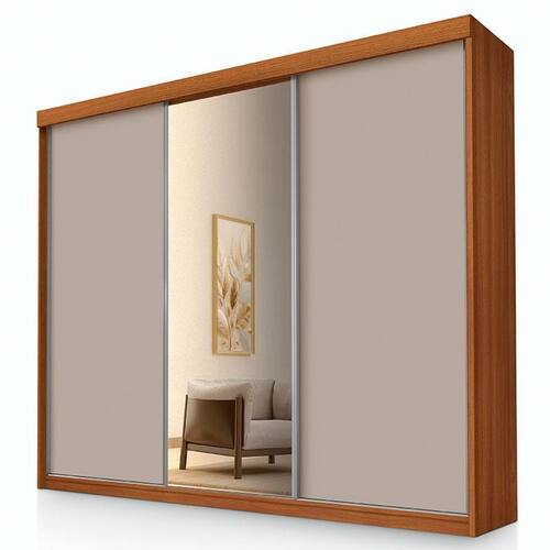 Guarda Roupa Casal Florença 3 Portas de Correr com Espelho Carvalho New Maní - Luapa