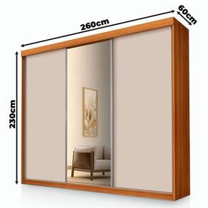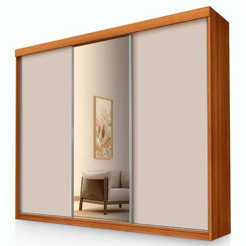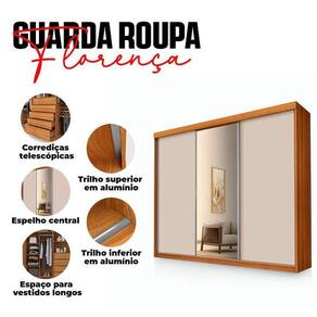 Guarda Roupa Casal Florença 3 Portas de Correr com Espelho Freijó Off White Pina - Luapa