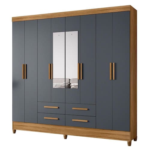 Guarda Roupa Casal Flórida 8 Portas e 4 Gavetas com Espelho - Moval - Cinza