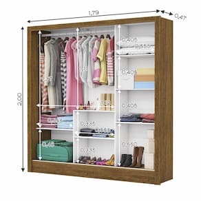 Guarda-Roupa Fortaleza, combinação perfeita entre conforto e conveniência para o quarto. O Guarda-Roupa Fortaleza com 3 portas de correr, 2,00m de altura, 1,79m de largura e 0,47m de profundidade combinado com 6 prateleiras e um amplo cabideiro, possui soluções inovadoras Para atender as mais exigentes necessidades. Cabideiros com 1,11m com suporte no centro. Não enverga com peso dos moletons, ternos, sobretudos, camisas e acessórios. Prateleiras ideais para colocar roupas de banho, perfumes, kits de maquiagem, caixinhas com acessórios e bolsas menores, e ainda com divisão ele/ela, proporcionando ao casal acomodar todas as roupas e acessórios de forma mais organizada e com maior visibilidade. Sapateiras com espaço ideal para guardar desde mala de viagem até coleções de tênis, sapatos, ou outros acessórios.