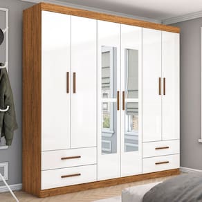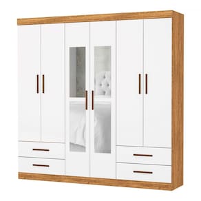 O(a) Guarda-Roupa Casal Genova 6 Portas 4 Gavetas com Espelho Cinamomo/Branco - Carioca Móveis é produzido em MDP na escala de brilho Fosco e Semi-Brilho, e possui um grau de dificuldade de montagem: Médio.