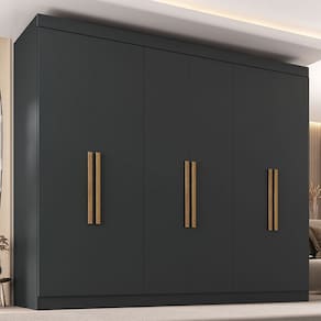 O(a) Guarda-Roupa Casal German 6 Portas 2 Gavetas Preto - Maxel é produzido em MDP na escala de brilho Brilhante, e possui um grau de dificuldade de montagem: Médio.