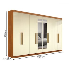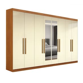 O(a) Guarda-Roupa Casal German 8 Portas 4 Gavetas com Espelho Cinamomo/Off White - Maxel é produzido em MDP na escala de brilho Brilhante, e possui um grau de dificuldade de montagem: Médio.