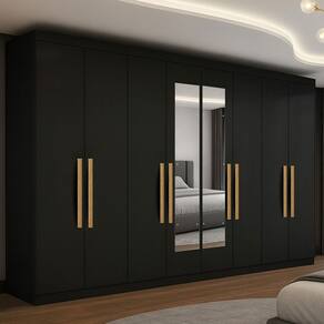 O(a) Guarda-Roupa Casal German 8 Portas 4 Gavetas com Espelho Preto - Maxel é produzido em MDP na escala de brilho Brilhante, e possui um grau de dificuldade de montagem: Médio.