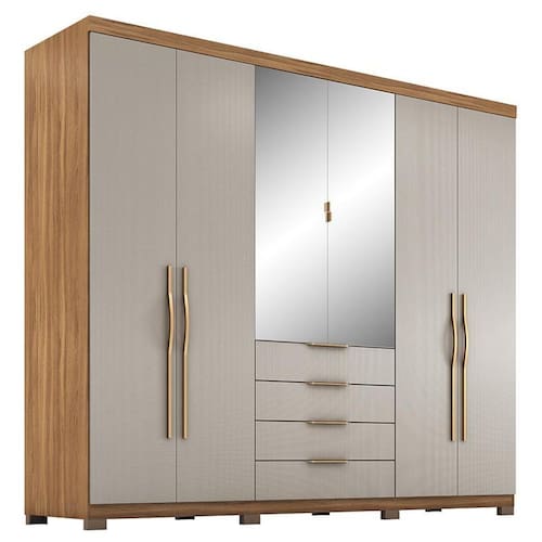 MDP-MDPGuarda Roupa Casal Giardino 6 Portas 4 Gavetas com Espelho e Pés - Demóbile