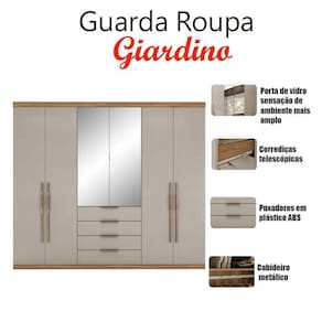 Transforme seu quarto com esse belo guarda roupa da linha Giardino desenvolvido pela Demóbile com materiais de altíssima qualidade e procedência em MDP. Ideal para você que busca mais praticidade para o seu dia dia, possui amplo espaço interno, várias repartições nichos, prateleiras para acomodar roupas, acessórios, sapatos. Possui um design moderno conta-se com 6 portas sendo 2 delas com espelho trazendo aquele toque sofisticado. As gavetas equipadas com corrediças telescópicas deixando mais suave ao abrir e fechar. Aproveite e garanta já o seu!