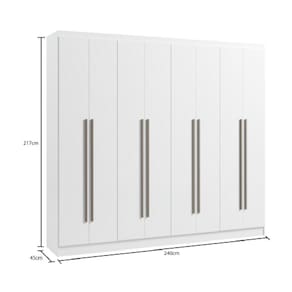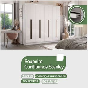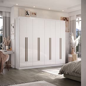 Roupeiro 8 Portas 2 Gavetas e ideal para quem busca organizacao, espaco e praticidade. Possui oito portas e duas gavetas com corredicas telescopicas, dois cabideiros e treze prateleiras, oferecendo amplo espaco interno e excelente distribuicao para roupas, calcados e acessorios. Produzido com materiais resistentes e acabamento de qualidade, garante durabilidade e funcionalidade para o dia a dia.