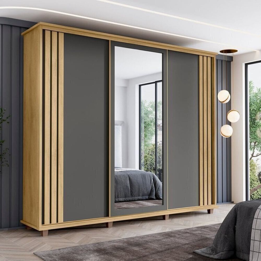 guarda roupa casal grafite porta de correr com espelho