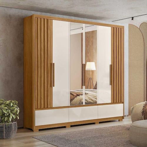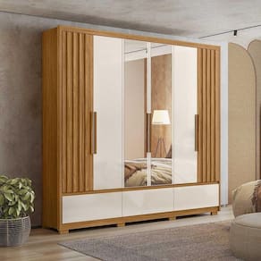O Guarda-Roupa Amazonas combina beleza e funcionalidade. Com 6 portas, sendo 2 delas com detalhes ripados, oferecendo versatilidade na montagem e permitindo um toque de exclusividade para o seu espaço. Os espelhos trazem praticidade ao dia a dia e sensação de amplitude ao ambiente. Suas divisórias foram projetadas para garantir uma organização perfeita, com 5 gavetas 2 internas e 3 externas que facilitam o acesso e a organização dos seus itens do dia a dia. Além disso, o guarda-roupa conta com 3 cabideiros, sendo um deles dedicado a roupas longas, e 9 nichos que ajudam a manter o ambiente bem organizado e funcional. Com essas características, o Guarda-Roupa Amazonas é ideal para quem busca um móvel elegante e eficiente.