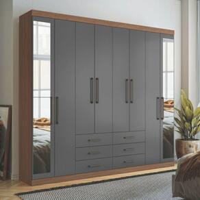 Funcional e completo para compor o dormitorio de casal, o Guarda-Roupa Havana Master tem espaco ideal para acomodar todos os pertences de forma organizada, seja nas 6 gavetas ou nas 8 portas - os nichos internos tem ate amplo maleiro. Por fora, ele traz visual perfeito para quem busca um movel moderno - a tonalidade classica e os puxadores alongados sao puro charme!