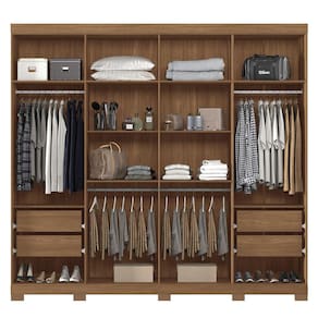 Guarda Roupa Casal Havana Master Vip 8 Portas 4 Gavetas Santos Andirá O guarda-roupa Master Vip 8.4 é um produto de amplo espaço. Possui divisão interna ideal para compor um quarto de casal, pois possui espaço certo para Ele e também para Ela. Com 04 amplas gavetas que deslizam suavemente sobre corrediças metálicas, 10 amplas prateleiras para acomodar as roupas que precisam ser dobradas, 04 cabideiros/calceiros em alumínio para pendurar as roupas com organização. Sem falar em seu design moderno com puxadores em alumínio, dando ao produto mais charme e beleza. Características: • 08 Portas com dobradiças metálicas• 10 Prateleiras• 04 cabideiros/calceiros em alumínio• 04 Gavetas com corrediças metálicas• Amplo maleiro• Puxadores em alumínio• Conjunto de pes com 10 unidades em Abs Dimensões: Altura: 222,6 cm Largura: 238,8 cm Profundidade: 46,3 cm Peso: 148,90 kg Medidas da gaveta: Altura: 10,1 cm Largura: 48,3 cm Profundidade: 35 cm Manutenção: Não limpar com álcool ou qualquer outro produto químico, utilize somente pano seco ou levemente umedecido.Garantia de Fábrica: 03 Meses (90 dias).