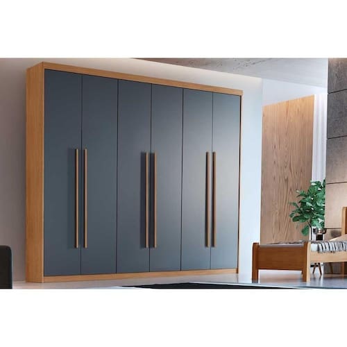 Guarda Roupa Solteiro Hawaii 6 Portas e 2 Gavetas Naturale/Grafite - Rufato