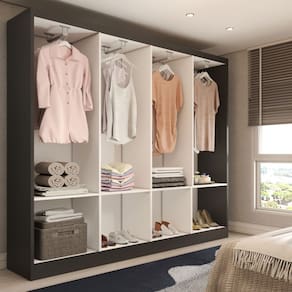 - Acompanha: 1 Guarda-Roupa + Kit Ferragens + Manual de Montagem