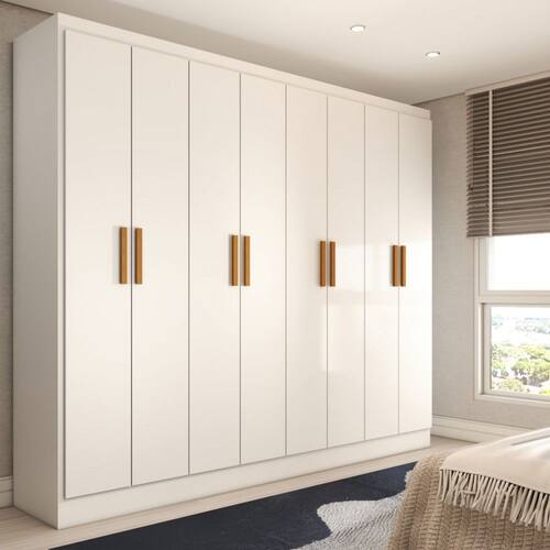 O(a) Guarda-Roupa Casal Hilton 8 Portas Branco - Loja é produzido em MDP na escala de brilho Semi-Brilho, e possui um grau de dificuldade de montagem: Médio.
