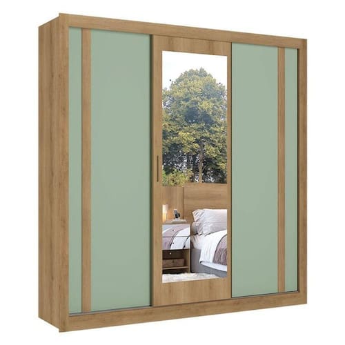Guarda Roupa Casal Ibiza Glass 3 Portas Capuccino Menta Flex - THB