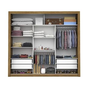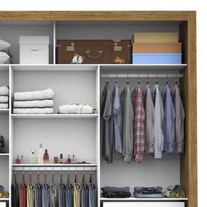 Guarda Roupa Casal Ilhéus 3 Pts 4 Gvts 6 Prat Carioca Móveis Cinamomo/branco Guarda-Roupa Ilheus com 3 portas de correr, 218cm de altura, 216cm de largura e 52cm de profundidade combinado com 4 gavetas, 6 prateleiras e 2 cabideiros. Possui trilho em aluminio e roldanas em aco, tudo isso para um deslizar perfeito de suas portas. Nos maleiros cabem certinhos edredons, cobertores, travesseiros, malas toalhas, bolsas, entre outros. Os dois cabideiros, alem de resistentes, nao envergam com o peso dos moletons, ternos, sobretudos, camisas e acessorios. As prateleiras sao ideais para colocar roupas de cama e de banho, perfumes, kits de maquiagem, caixinhas com acessorios e bolsas menores. As quatro gavetas fixadas sobre corredicas metalicas, sao otimas para guardar roupas mais leves, malhas, pijamas e roupas intimas. Estrutura em MDP. Caracteristicas: Modelo: Ilheus Marca: Carioca Moveis Tamanho: Casal Material: MDP Material das Corredicas: Metal Material dos Trilhos: Aluminio Material das Roldanas: Aco Portas: 03, de correr Gavetas: 04 Prateleiras: 06 Cabideiros: 02 Com Maleiro: Sim