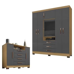 Guarda Roupa Casal Imperial com Cômoda Madri Carvalho Americano Grafite Incorplac