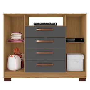 Cômoda Madri 4 Gavetas 2 Portas Carvalho Americano Grafite Incorplac