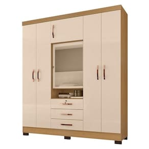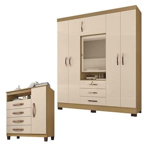 Guarda Roupa Casal Imperial com Cômoda Sapateira Cannes Carvalho Americano Off White Incorplac