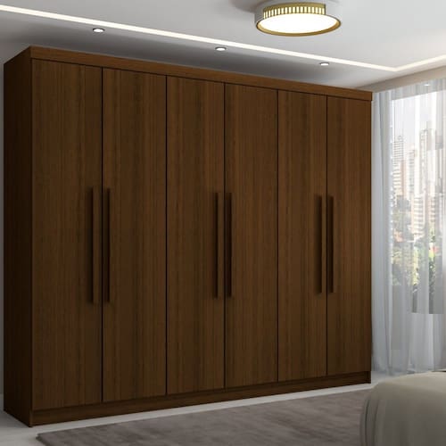 O(a) Guarda-Roupa Casal Império 6 Portas 2 Gavetas Imbuia Rústico - Loja é produzido em MDP na escala de brilho Impressão UV, e possui um grau de dificuldade de montagem: Médio.