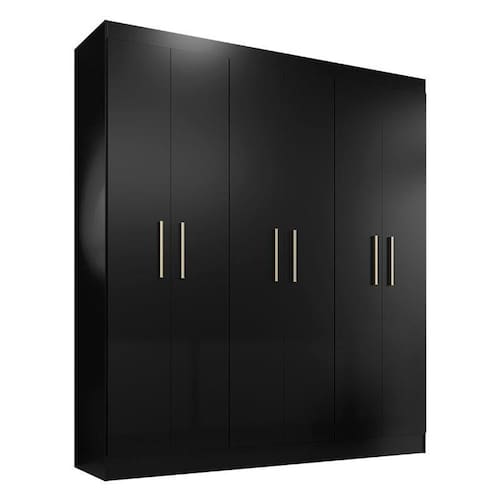 Guarda Roupa Casal Ipê com 6 Portas Preto Fosco - Kits Paraná