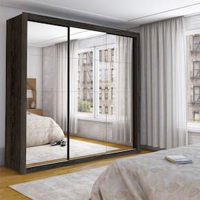 Guarda Roupa 3 Portas de Correr com Espelho Isabela Master. Acompanha 4 espelhos em todas as portas, que além de serem funcionais, trazem a sensação de amplitude, principalmente em ambientes menores. Sua cor combina facilmente com todos os estilos de decorações, além de deixar o seu quarto com um visual sofisticado. Ideal para cabides de até 37 cm, ele possui em seu interior 4 gavetas e 4 prateleiras para guardar suas roupas de cama, banho e o que mais for preciso, com a elegância e qualidade.