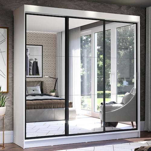 - Três (3) portas de correr com sistema anti-descarrilhamento, todas com espelhos