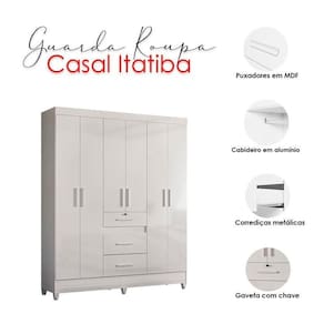 Guarda Roupa Casal Itatiba 6 Portas Branco Brilho - Moval