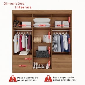 - Acompanha: Guarda-Roupa, Kit Ferragens e Manual de Montagem