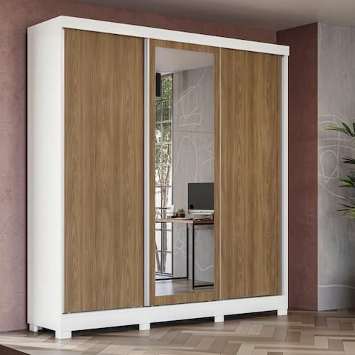 Produzido em MDP, material de alta qualidade, com chapa de 15mm, ele conta com três portas de correr e o tamanho ideal para todos os ambientes, com 2,23m de altura, 2,13m de largura e 53cm de profundidade. E são sete camadas de pintura, tanto na parte interna quanto na externa, o que garante mais durabilidade e beleza ao seu móvel.