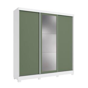 E para completar o charme do guarda-roupa, ele conta com corpo na cor branco, com acabamento em brilho, enquanto suas portas são reversíveis, possibilitando escolher entre as cores verde oliva, com pintura fosca, ou nogueira, com acabamento touch, que traz a textura dos veios da madeira, garantindo muita beleza para seu espaço. E com espelho de corpo inteiro e pés em polipropileno, esse modelo será o destaque do seu espaço, proporcionando beleza e praticidade ao seu dia a dia.