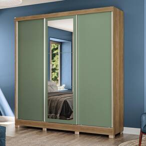 E para completar o charme do guarda-roupa, ele conta com corpo na cor nogueira, com pintura touch, que traz a textura dos veios da madeira, enquanto suas portas são reversíveis, possibilitando escolher entre as cores verde oliva, com pintura fosca, ou nogueira, com acabamento touch, garantindo muita beleza para seu espaço. E com espelho de corpo inteiro e pés em polipropileno, esse modelo será o destaque do seu espaço, proporcionando beleza e praticidade ao seu dia a dia.