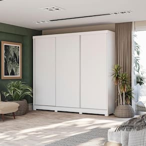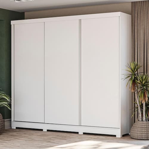 Deixe seu quarto ainda mais lindo, moderno e organizado com a linha de guarda-roupas 100% MDF da Oficial cor Branca, com 3 portas de correr e 8 gavetas, sem espelho e pés em polipropileno, ele tem o tamanho ideal para um quarto de casal. Todo produzido com chapas de 15mm, o que garante mais robustez, firmeza e qualidade ao seu pintura é feita com sete camadas, tanto na parte interna como na externa, garantindo mais durabilidade e beleza ao seu móvel. Além disso, as portas de correr tem puxadores em alumínio e possuem perfil metálico anti ê precisa de espaço? Na parte interna, há muito espaço com diversos nichos de tamanhos diferentes, ideal para organizar calçados e roupas dobradas. Nos cabideiros, que são metálicos e com suporte interno, garantindo melhor acabamento e durabilidade, é possível guardar as roupas em cabides e até mesmo organizar mantas e acessó gavetas possuem corrediças telescópicas, garantindo a abertura total, para que você aproveite todo espaço disponível.