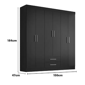 5 prateleiras 2 gavetas com Corrediças Metálicas Puxadores em ABS plástico de alta qualidade. Fabricado em MDP Acabamento Fosco ou Alto Brilho UV 2 Cabideiro de madeira. Fácil montagem Medidas: Altura 184cm x Largura 150cm x Profundidade 47cm x Peso 75kg