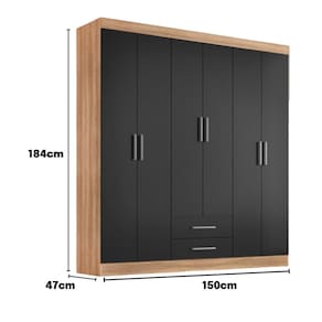 5 prateleiras 2 gavetas com Corrediças Metálicas Puxadores em ABS plástico de alta qualidade. Fabricado em MDP Acabamento Fosco ou Alto Brilho UV 2 Cabideiro de madeira. Fácil montagem Medidas: Altura 184cm x Largura 150cm x Profundidade 47cm x Peso 75kg