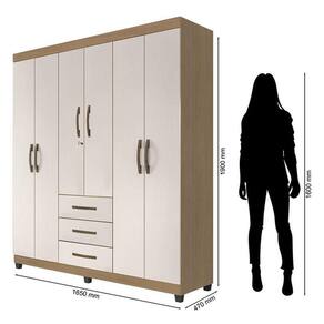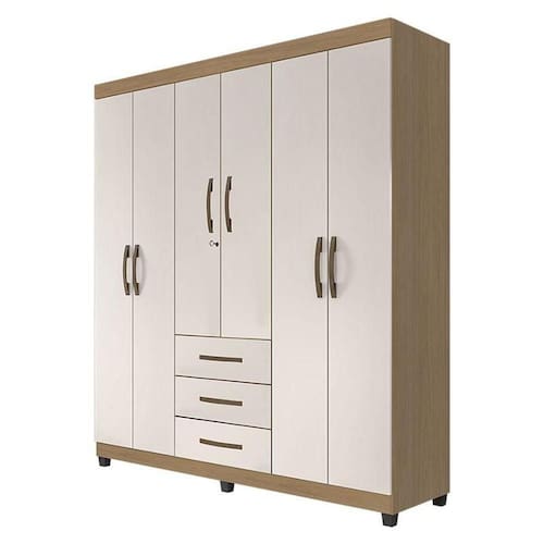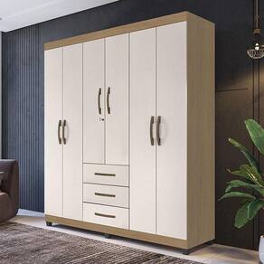 Guarda Roupa Casal Lion 6 Portas Nature Off White - Móveis Leão