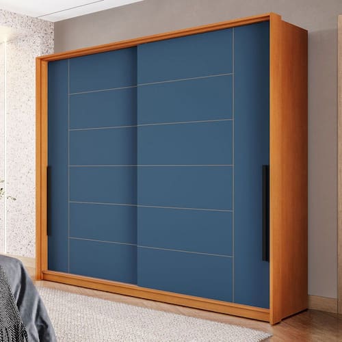 O(a) Guarda-Roupa Casal Lisboa 2 Portas 2 Gavetas Freijó/Azul - Politorno é produzido em MDF e MDP na escala de brilho Semi-Fosco, e possui um grau de dificuldade de montagem: Médio.
