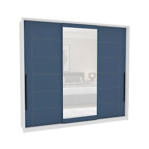 O(a) Guarda-Roupa Casal Lisboa 3 Portas 4 Gavetas com Espelho Branco/Azul - Politorno é produzido em MDF e MDP na escala de brilho Semi-Fosco, e possui um grau de dificuldade de montagem: Médio.