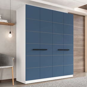 O(a) Guarda-Roupa Casal Lisboa 4 Portas 4 Gavetas Branco/Azul - Politorno é produzido em MDF e MDP na escala de brilho Semi-Fosco, e possui um grau de dificuldade de montagem: Médio.