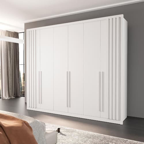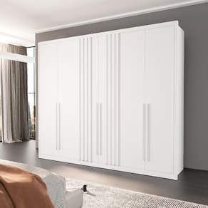 O Guarda-Roupa Casal Lisboa 6 Portas 6 Gavetas Bom Pastor é ideal para quem busca organização, resistência e um design sofisticado para o quarto. Produzido em 100% MDF, garante durabilidade e acabamento superior. Conta com 6 portas de bater/abrir, que oferecem acesso prático e eficiente, além de 6 gavetas espaçosas, perfeitas para manter roupas e acessórios sempre organizados. Com 2,42 m de largura, 2,34 m de altura e 56 cm de profundidade externa, proporciona excelente aproveitamento interno, mantendo o ambiente funcional e elegante. Enviado direto da fábrica em 6 volumes, requer montagem profissional para assegurar a segurança e o melhor acabamento.