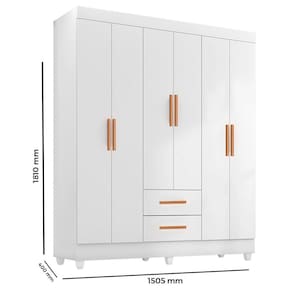 O Guarda-Roupa Casal Lite 6 Portas e 2 Gavetas é ideal para quem busca organização e praticidade no dia a dia. Produzido em MDP com pintura UV, oferece resistência e ótimo acabamento. Conta com 6 portas com dobradiças metálicas, cabideiro, prateleiras internas bem distribuídas e 2 gavetas com corrediças metálicas. Os puxadores em MDF e os pés em PVC completam o design funcional e moderno do móvel.