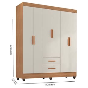 Guarda Roupa Casal Lite 6 Portas E 2 Gavetas Nature/off White - Móveis Leão Nature/off White