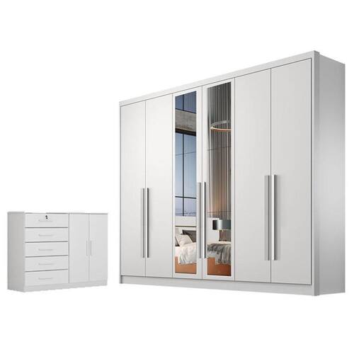GGuarda Roupa Casal Livorno com Espelho e Cômoda Seul Neve - Novo Horizonte