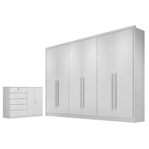 Guarda Roupa Casal Livorno com Nicho e Cômoda Seul Neve - Novo Horizonte