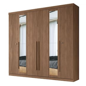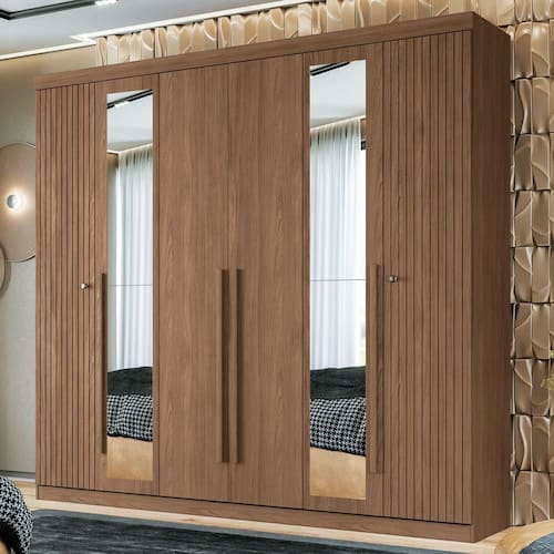 Guarda-Roupa Casal Loanda 6 Portas 4 Gavetas Ripado Jatoba com Espelho - Pnr Móveis - Marrom